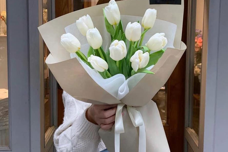 - Hoa tulip trắng: Thể hiện nét đẹp thuần khiết và thanh nhã, rất phù hợp với hình tượng nhà giáo.