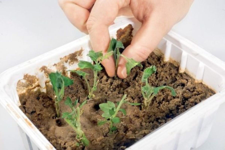 - Bước 3: Trồng chồi vào đất và đặt ở nơi có nhiệt độ ổn định, mát mẻ, độ ẩm cao và chăm sóc để chỗ ra rễ.