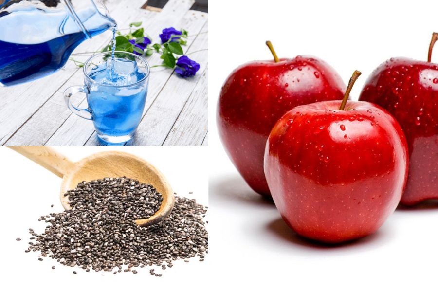 Nước detox hoa đậu biếc, táo, hạt chia giảm cân