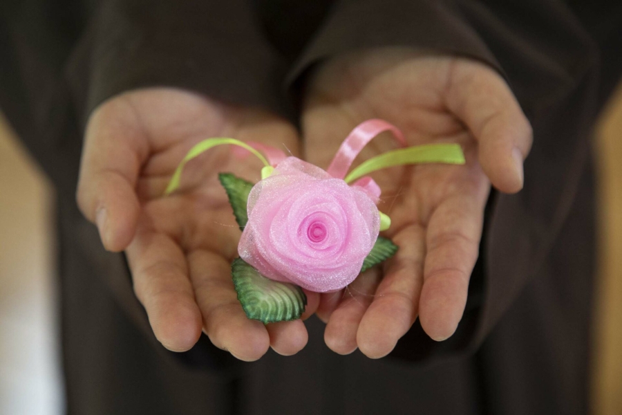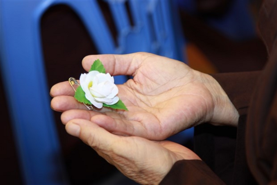 Các tu sĩ, với lòng từ bi đến tất cả chúng sinh, Vu Lan cài hoa hồng vàng để thể hiện tấm lòng cao quý và tinh thần cao cả của họ.