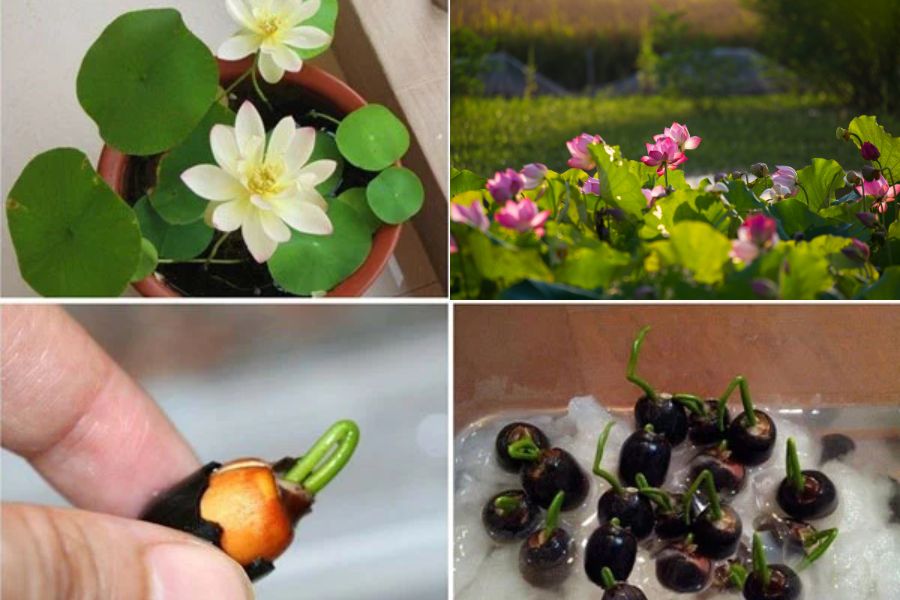 - Bước 3: Khi hạt sen giống bắt đầu nảy mầm, chúng sẽ chìm xuống đáy và các chồi sẽ bắt đầu phát triển. Sau đó bạn chỉ cần đem hạt đi gieo trồng.
