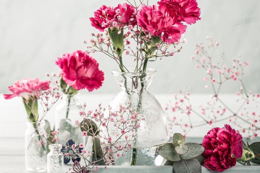 Cẩm chướng sẽ là một loài hoa trang trí phòng khách tuyệt đẹp bạn không nên bỏ lỡ. Phòng khách của bạn khi được bày một bình hoa cẩm chướng sẽ có cảm giác được thổi bừng sức sống.