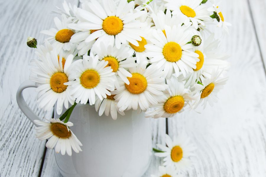 Cúc họa mi – loài hoa trang trí phòng khách tinh tế, lịch thiệp và nhẹ nhàng. Cúc họa mi những năm gần đây đang rất được ưa chuộng, với hình dáng nhỏ nhắn và màu trắng thuần khiết.