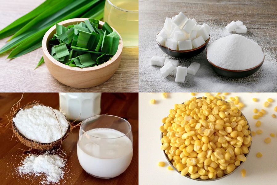 - Rửa sạch lá dứa, thái khúc rồi bỏ vào máy xay, lọc qua rây thu được 50ml nước cốt lá dứa.