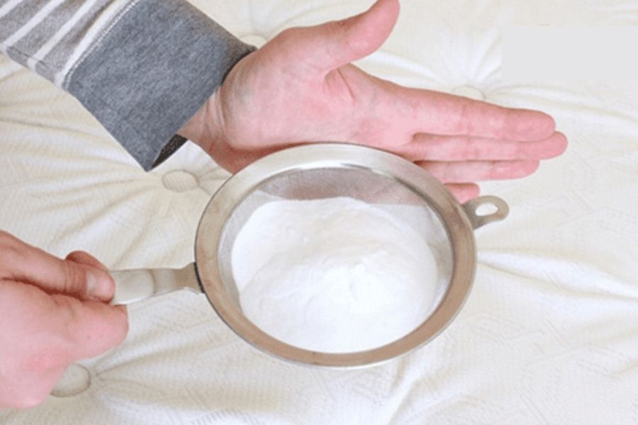 Đầu tiên bạn sử dụng máy hút bụi hoặc khăn lau để làm sạch bụi, cặn bẩn bám trên bề mặt nệm. Sau đó sử dụng bột baking soda rắc đều lên bề mặt nệm một lớp mỏng để trong vòng 15 – 20 phút để giúp khử mùi, hút ẩm.