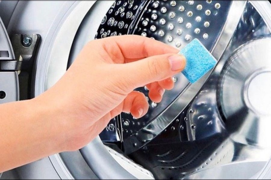 - Bước 2: Bổ sung thêm viên tẩy/bột tẩy chuyên dụng vào lồng giặt.