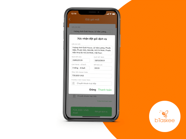 Đối với các hình thức thanh toán thông qua thẻ Visa/Master Card, thẻ ATM và Internet Banking, ví MoMo, bạn sẽ thao tác việc thanh toán trực tiếp trên ứng dụng. Sau khi thanh toán thành công, hệ thống sẽ kích hoạt gói dọn dẹp nhà. Và gửi một thư xác nhận thành công đến email đã đăng ký của bạn trên ứng dụng.