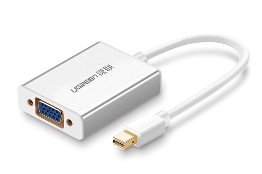 Sử dụng dây cáp kết nối, một đầu cắm vào cổng DisplayPort của laptop, đầu còn lại cắm vào cạnh máy chiếu.