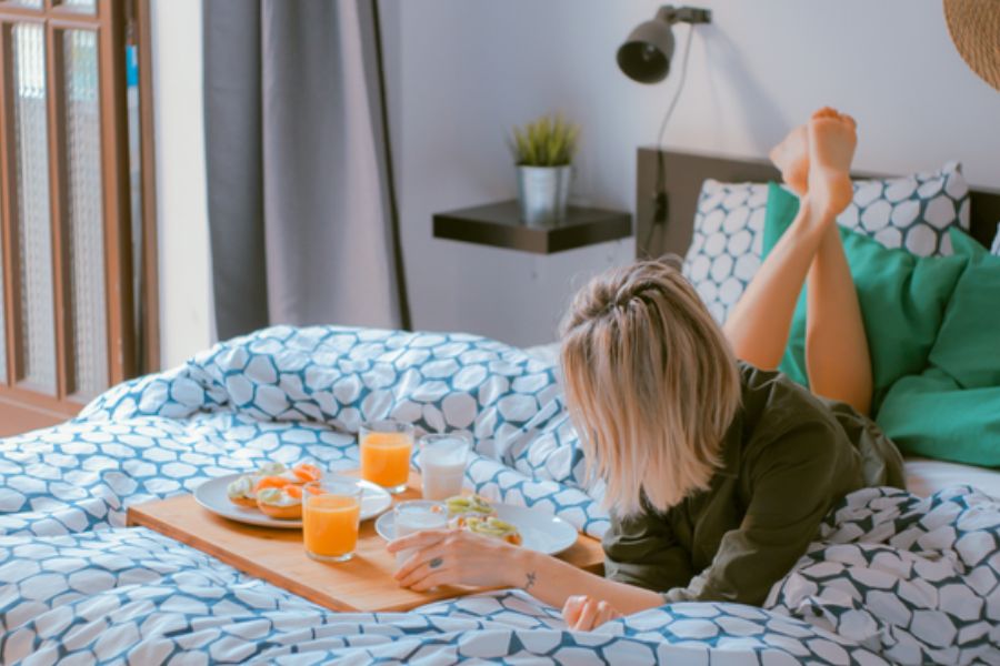 Không ăn hoặc uống trên giường