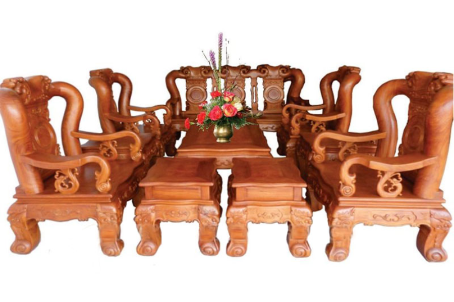 Bàn ghế gỗ chữ L hiện nay là một thiết kế phổ biến, kết hợp giữa khung gỗ chắc chắn bao quanh và phần đệm ngồi hoặc trần gỗ 100% bên trong.