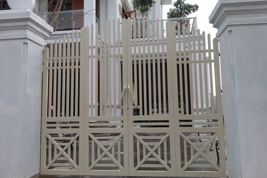 Kích thước cổng nhà đôi cần phù hợp với chiều rộng của lối vào. Nếu cổng quá rộng, sẽ làm cho không gian trông lộn xộn và thiếu thẩm mỹ.