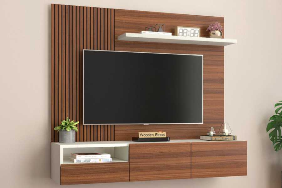 Chiều rộng kệ để giữ tivi ở giữa và phần nhô ra thường khoảng 5 inch để đặt các phụ kiện trang trí cho kệ tivi.