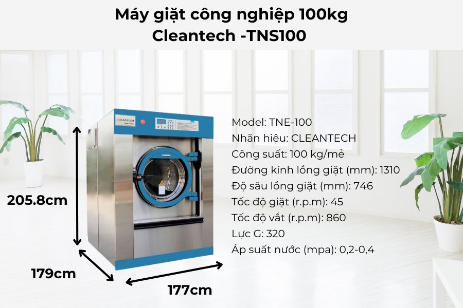 Máy giặt công nghiệp có thiết kế tương tự như loại thường nhưng công suất và size lớn hơn hẳn. Sản phẩm thường có khối lượng giặt dao động từ 25 – 100kg và được sử dụng trong quy mô nhà xưởng.