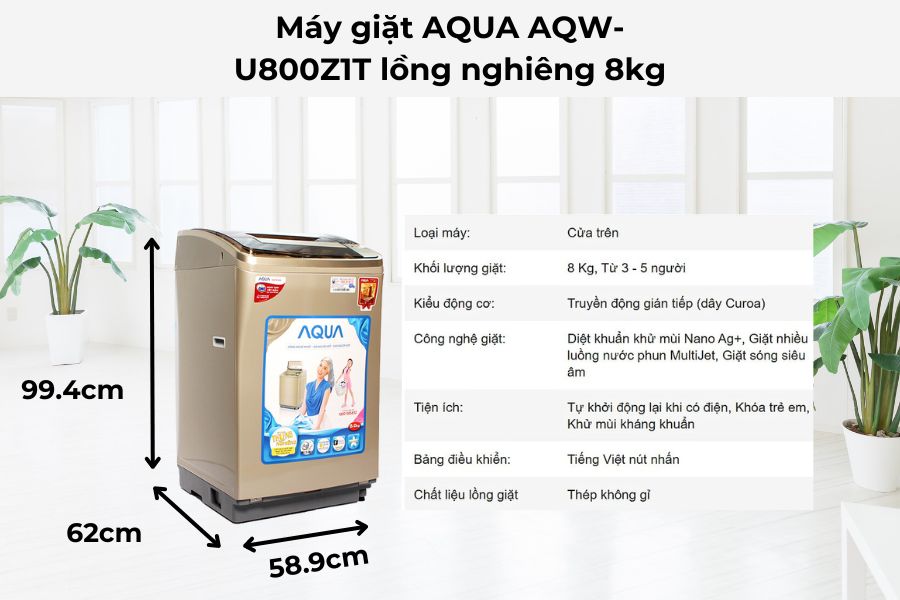 - Các thương hiệu khác nhau sẽ có tiêu chuẩn thiết kế, kích thước riêng cho từng sản phẩm. Dù sở hữu trọng lượng như nhau nhưng máy của Aqua sẽ có size khác biệt so với máy của Toshiba, LG,…