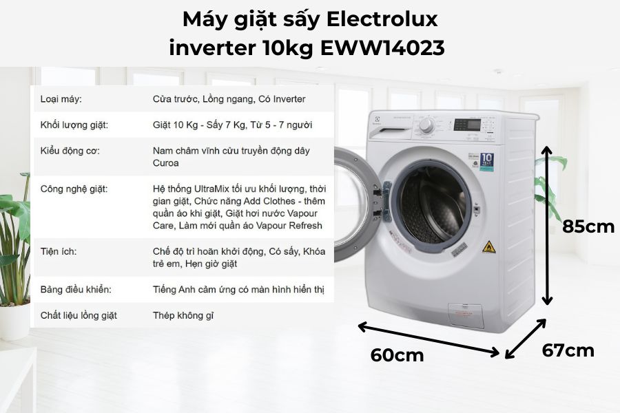 Kích thước máy giặt sấy phân theo khối lượng giặt được trình bày như sau: