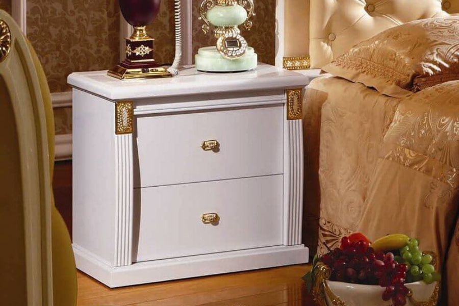 Tab đầu giường có kích thước thường được thiết kế với phong cách tân cổ điển, chú ý đến những chi tiết trang trí tinh tế, đường cong mềm mại.