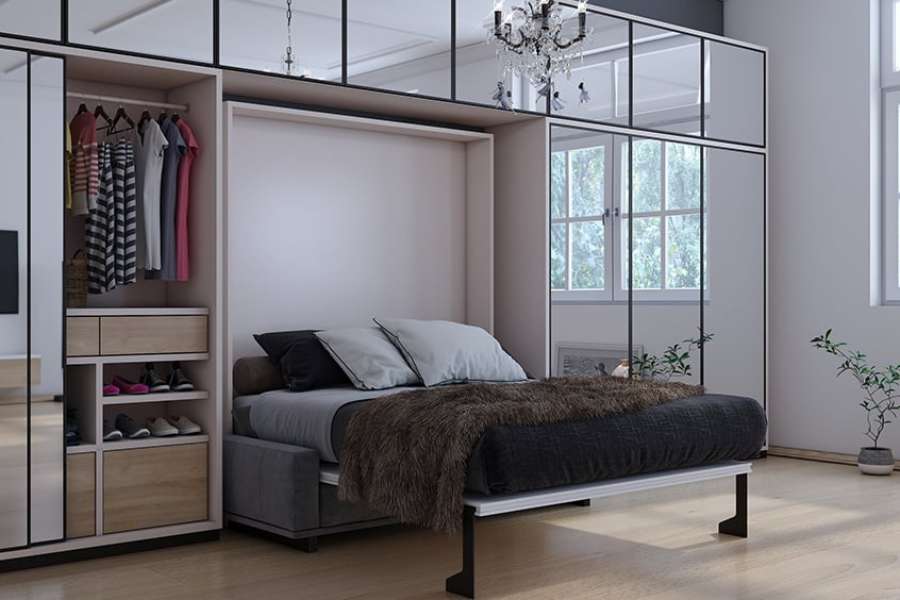 Nếu không có nhiều không gian, bạn có thể chọn tủ quần áo góc hoặc tủ quần áo trượt để tiết kiệm diện tích. Nếu không muốn tốn tiền sửa chữa, bạn có thể chọn tủ quần áo đứng hoặc treo tường để tiết kiệm không gian và dễ dàng di chuyển khi cần thiết.