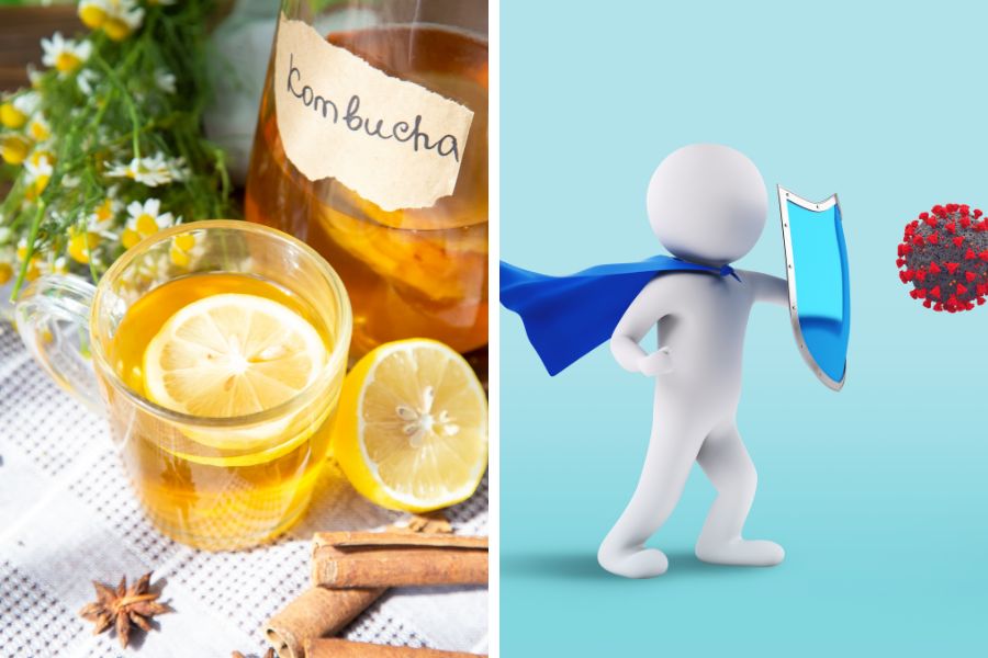 Trà Kombucha chứa hàm lượng lớn vitamin C có tác dụng tăng cường hệ miễn dịch, chống lại sự thương tổn của các tế bào, nhất là khi bạn bị cảm cúm.