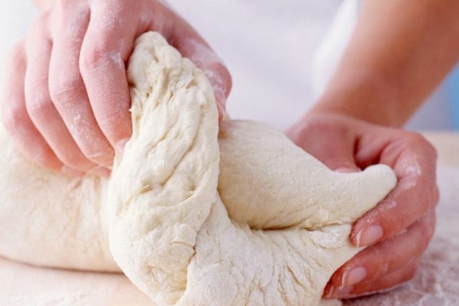 - Ray vào hỗn hợp kể trên 160g bột mì đa dụng và trộn đều. Bạn nhào bột cho đến khi tạo thành khối thống nhất, dẻo mịn, có độ đàn hồi và không bị dính tay.