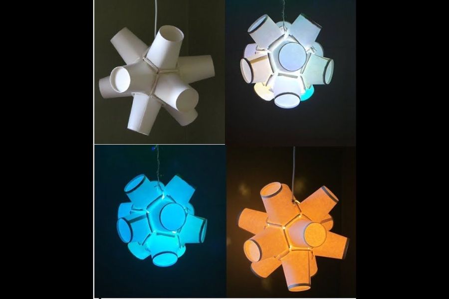 - Bước 4: Cuối cùng hãy dùng keo gắn nắp nhựa lại phần nắp đã được cắt. Để hoàn thành, bạn hãy dùng sơn xịt hoặc màu vẽ sáng tạo thêm những hình bắt mắt cho chiếc lồng đèn của mình.