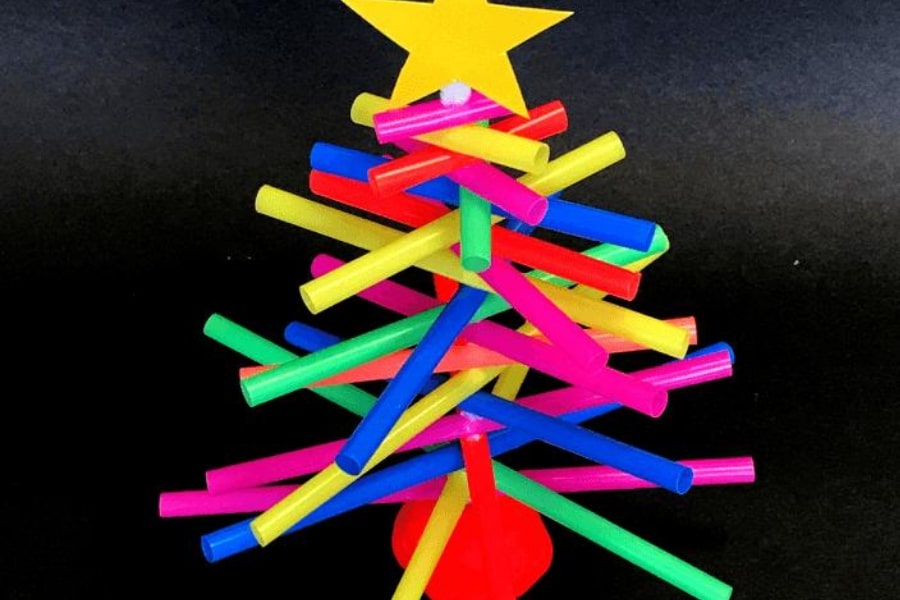 Ngoài ra, bạn có thể tự làm thân cây thông bằng cách ghép nhiều ống hút lại với nhau rồi dùng kéo để cắt tỉa cho giống là được.
