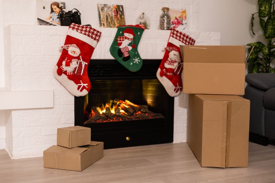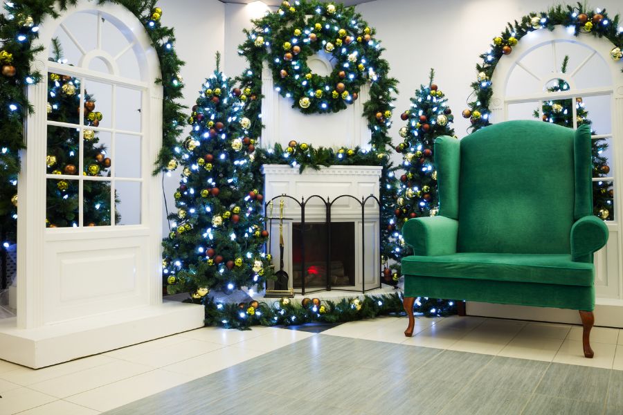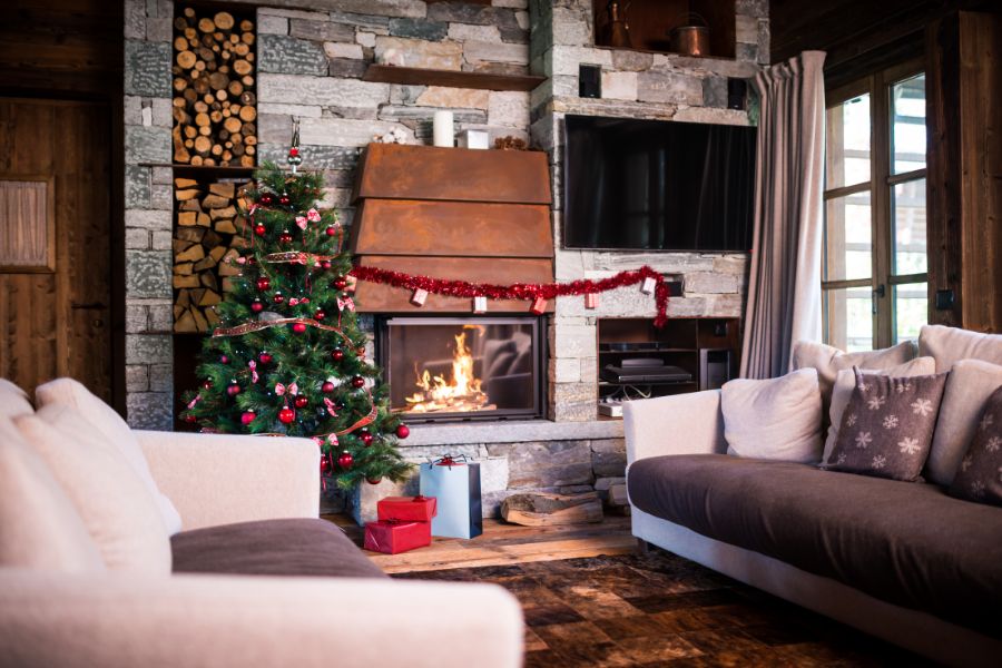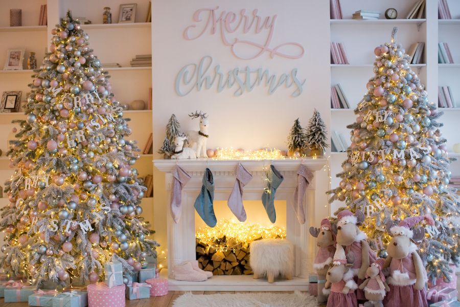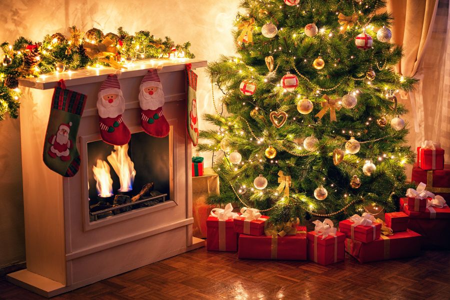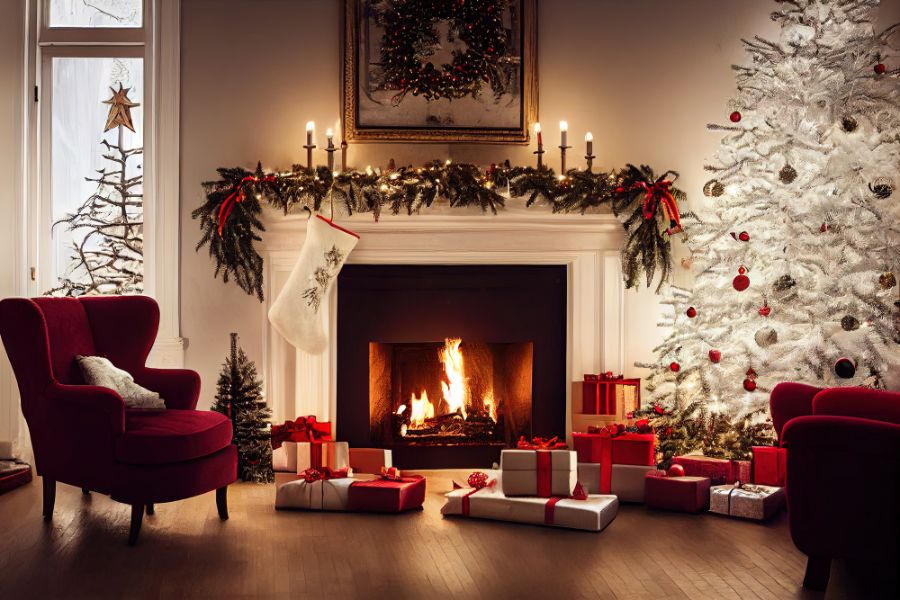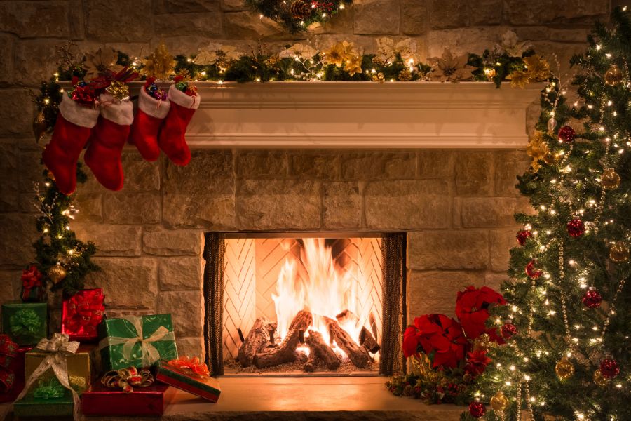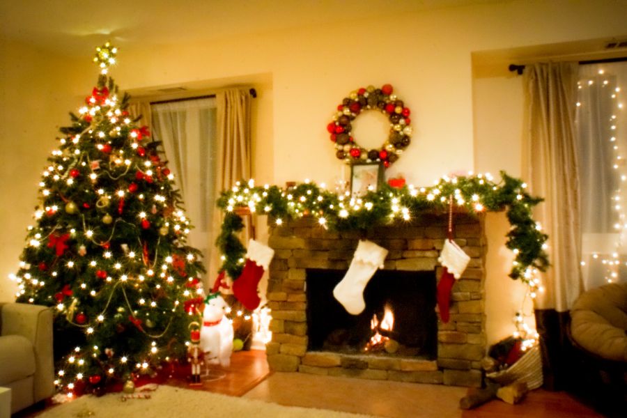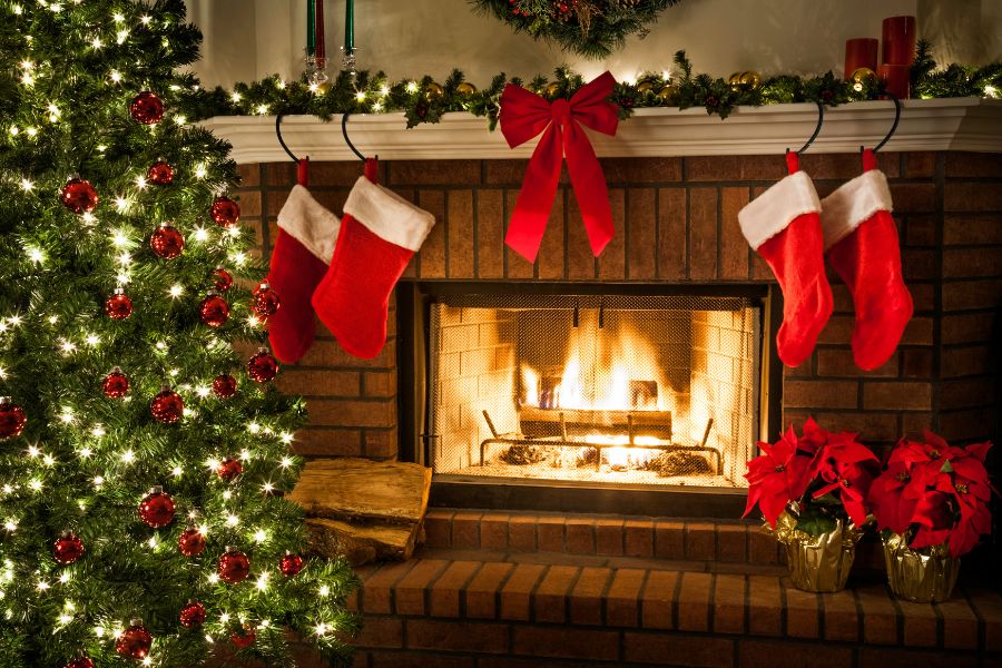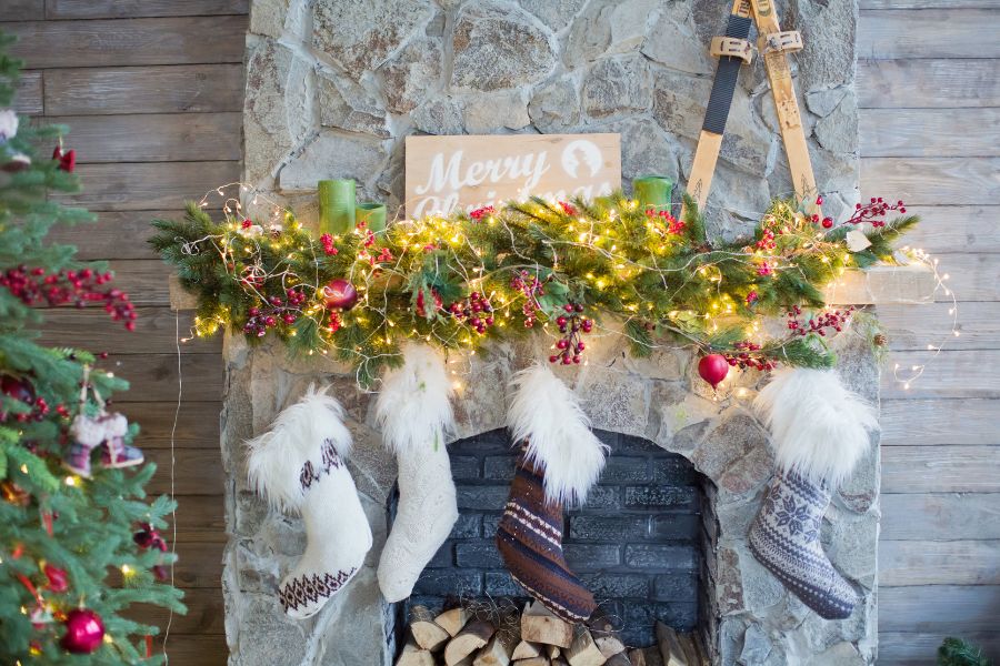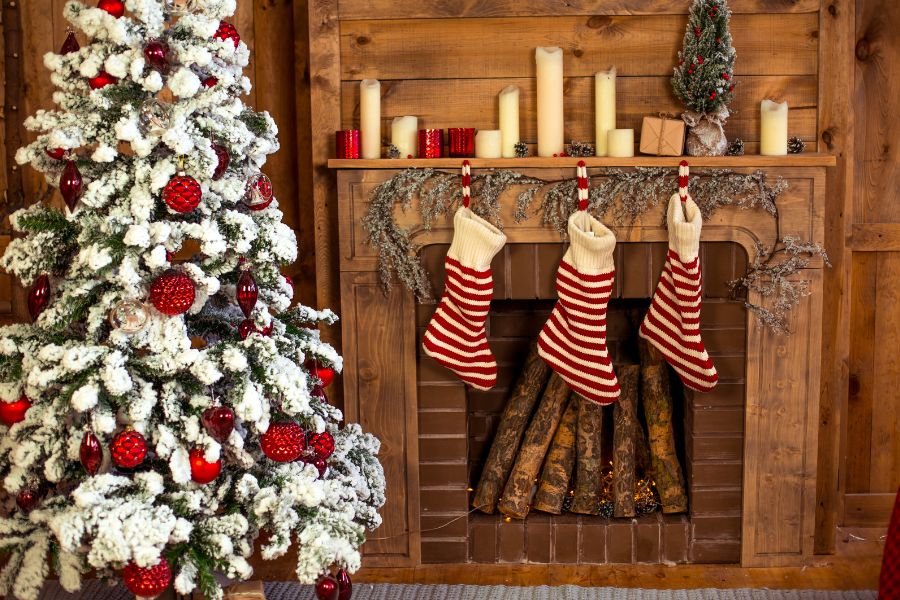 - Những đồ vật Giáng Sinh để trang trí như: Găng tay, tất họa tiết Noel, bếp củi hồng,…
