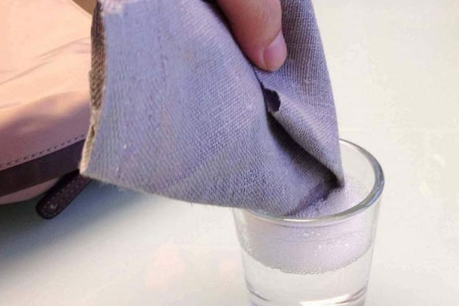 - Đổ một ít nước vào nơi trẻ tè. Sau đó đặt một chiếc khăn khô sạch lên chỗ vừa đổ nước, giẫm mạnh lên đệm để nước được đẩy ra ngoài. Khi sử dụng khăn khô, nước trong nệm sẽ được thấm bớt.