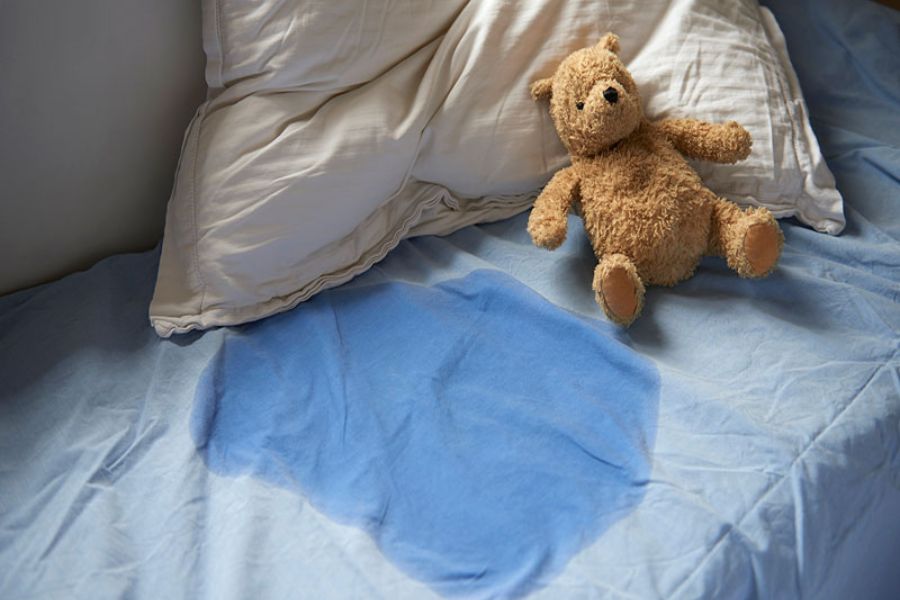 Nếu trẻ đã tè dầm trong thời gian lâu trước đây, bạn có thể đổ nước vào chỗ trẻ tè trên đệm. Sau đó trải khăn khô lên nệm ướt, đạp mạnh để nước được đẩy ra ngoài. Lặp lại thao tác này nhiều lần để làm loãng nước tiểu đã khô.