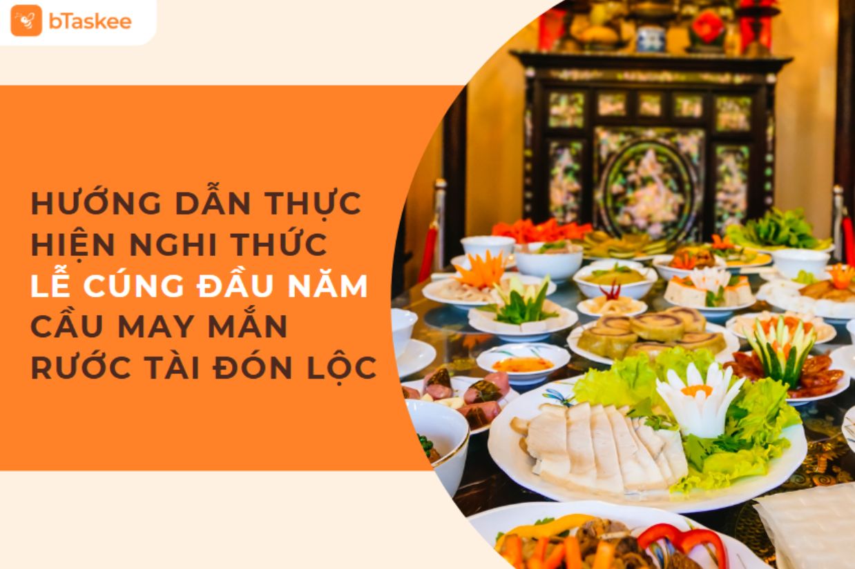 Lễ cúng đầu năm là một nghi thức quan trọng trong văn hóa Việt Nam, mang ý nghĩa cầu bình an, may mắn và tài lộc. Tìm hiểu cách chuẩn bị mâm cúng đúng phong tục cùng bTaskee và khởi đầu năm mới thuận lợi, trọn vẹn ý nghĩa!