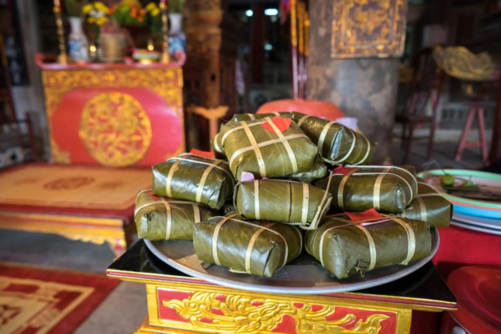 Bánh chưng, bánh tét: Hai loại bánh truyền thống không thể thiếu trong dịp Tết, tượng trưng cho đất trời và sự sum vầy.