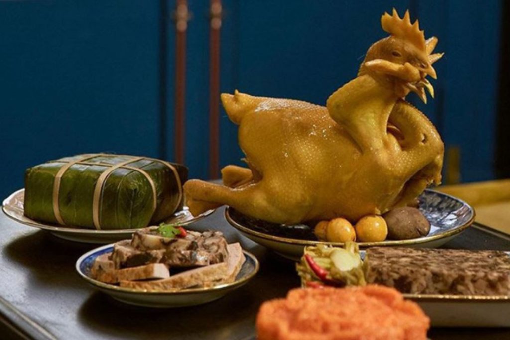 Thịt gà luộc: Thịt gà luộc là món ăn phổ biến trong lễ cúng đầu năm. Gà cần được luộc chín, không nát, tượng trưng cho sự đủ đầy và may mắn.