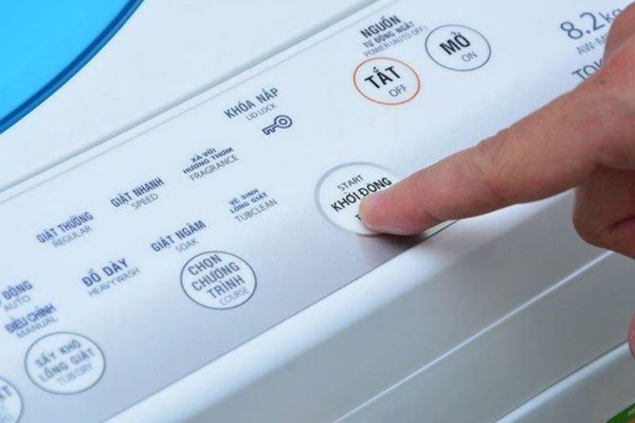- Nhấn và giữ nút Power (bật/tắt nguồn) để máy giặt tự reset lại chương trình.