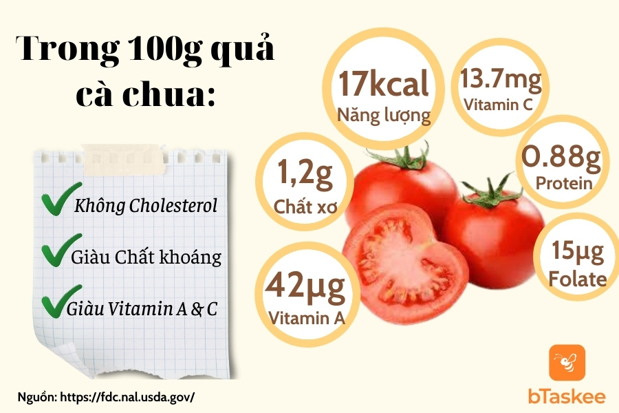 Theo Bộ Nông nghiệp Hoa Kỳ, trong 1 trái cà chua chứa:
