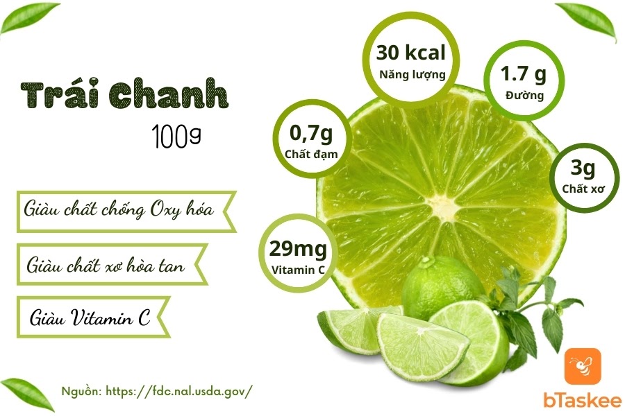 Theo USDA, trung bình trong 100g chanh có chứa: