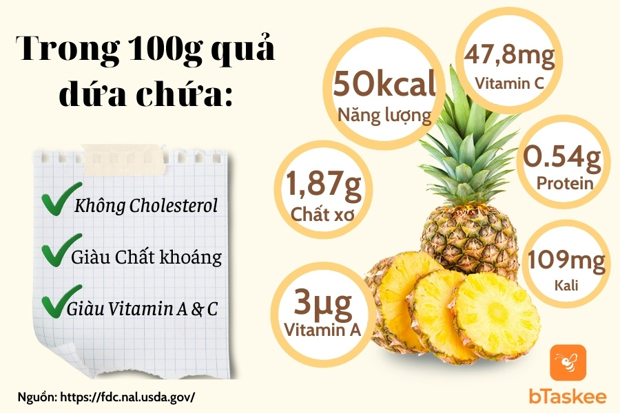 Theo Bộ Nông nghiệp nghiệp Hoa Kỳ (USDA), trung bình trong 100g dứa chứa: