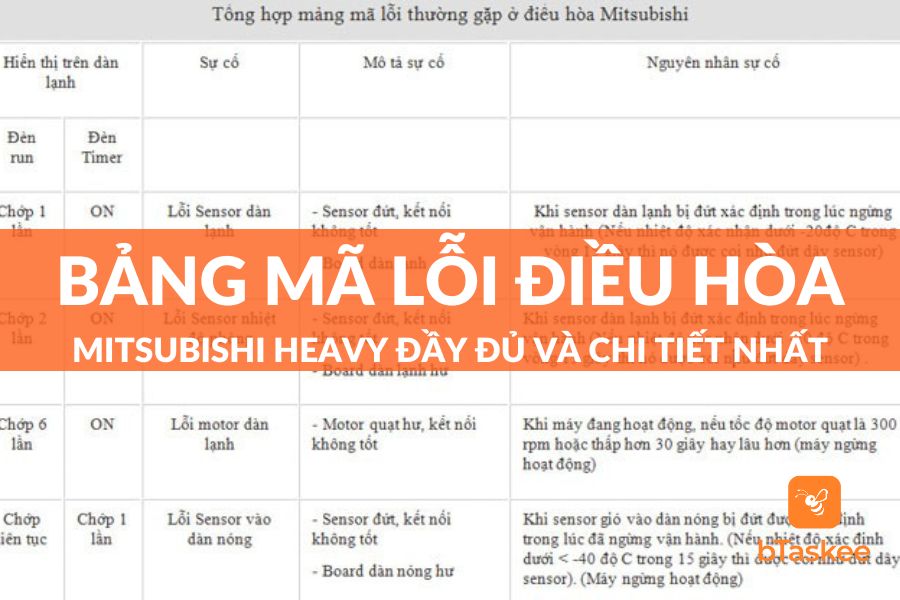 Bảng mã lỗi điều hòa Mitsubishi Heavy hữu ích cho người dùng trong quá trình sử dụng. Hãy yên tâm và tham khảo mã lỗi bTaskee chia sẻ dưới đây để tìm hiểu nguyên nhân và cách khắc phục một cách chính xác và đơn giản nhất!