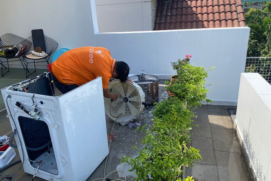 – Vệ sinh sạch sẽ xung quanh phạm vi sửa chữa và phải để sàn và máy không được dính nước.