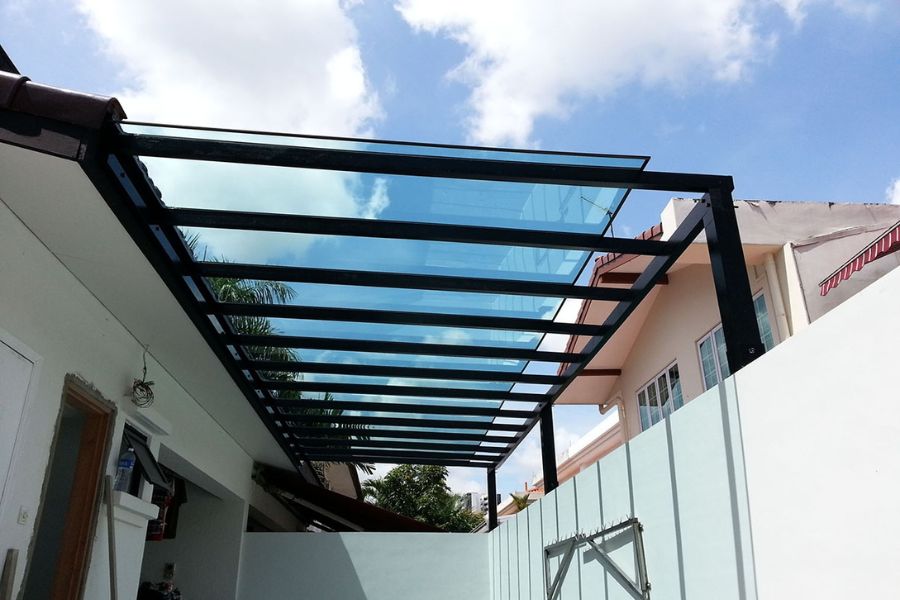 Hệ thống mái kính được sử dụng nhiều nhất là kính cường lực với khả năng chống chịu tốt trước thời tiết xấu và loại kính dán an toàn.
