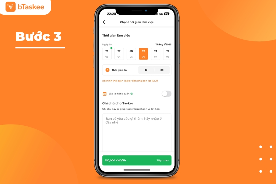**Lưu ý: Để đảm bảo chọn đúng Tasker có kinh nghiệm làm món đó. Hãy ghi chú rõ ràng khi đặt lịch để bTaskee hỗ trợ tìm kiếm chị ong thích hợp nhất.