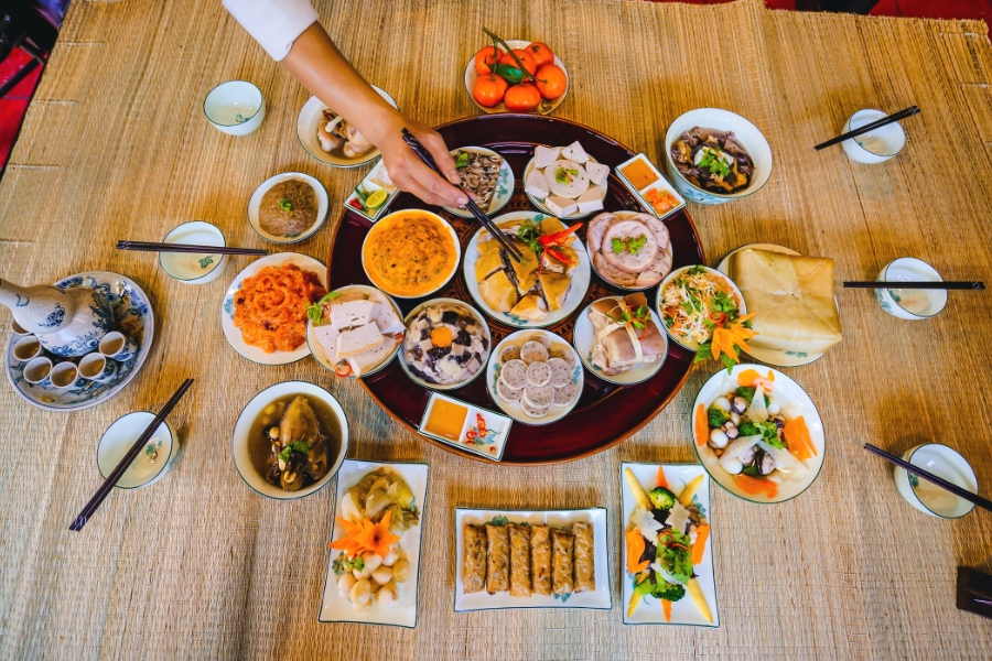 Mâm cơm ngày Tết là nét văn hóa đặc trưng của người Việt, thể hiện sự sum vầy và lòng thành kính với tổ tiên trong dịp năm mới.