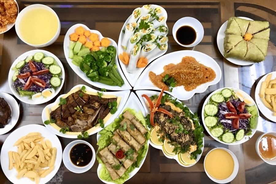 - Mâm cơm: 1 đĩa xôi, 1 con gà luộc, 1 đĩa chả,… tượng trưng cho sự no đủ, may mắn và thịnh vượng.