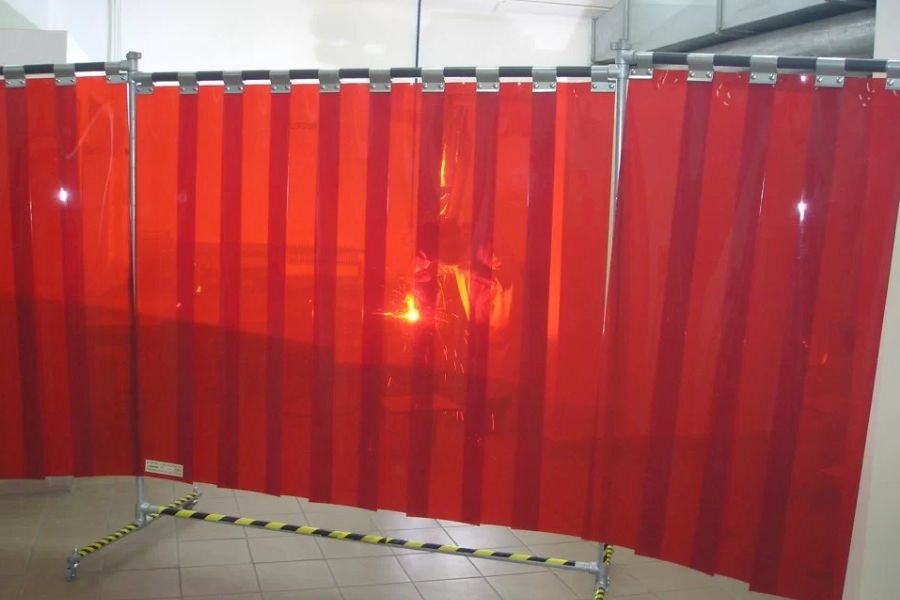 Màn PVC ngăn tia lửa hàn có độ dày từ 2 – 3mm, rộng từ 200 – 300mm và 1 cuộn dài 50m.