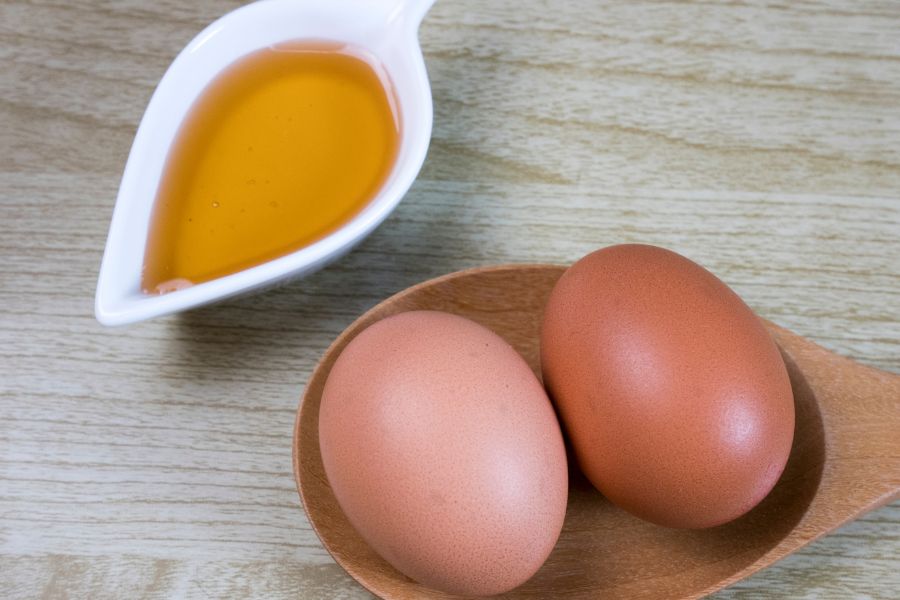 - Kết hợp mật ong với lòng đỏ trứng gà