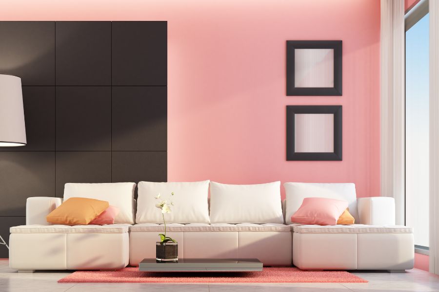 Tuy nhiên, khi sử dụng tông màu hồng – đỏ trong phòng khách, bạn cần lưu ý về cường độ màu sắc để tránh gây choáng mắt và quá chói. Bạn có thể sử dụng tông màu nhạt hơn để tạo ra sự cân bằng và tinh tế hơn cho không gian của mình.