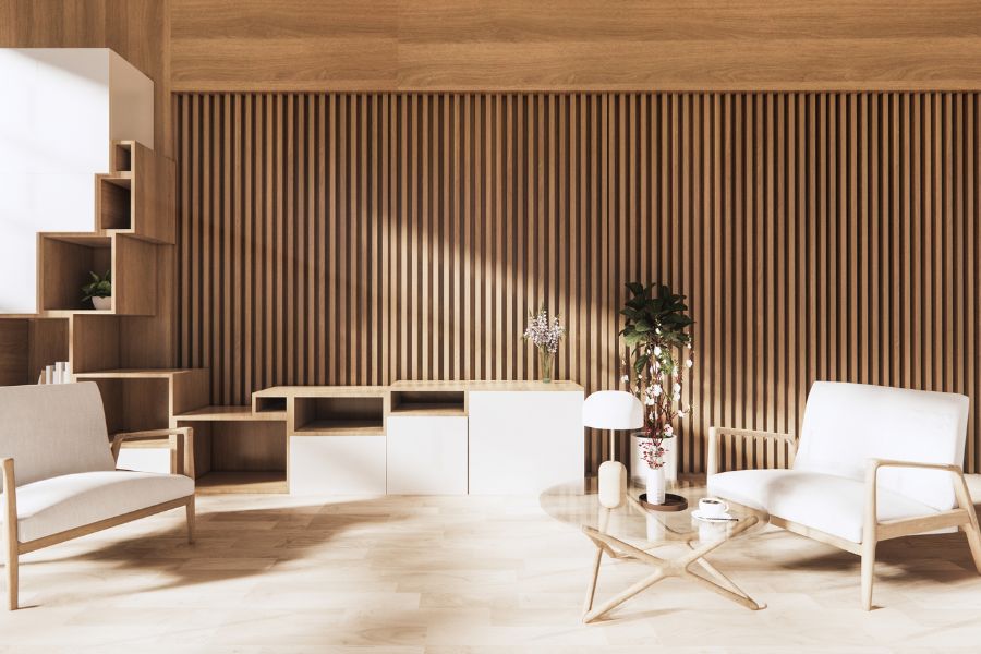 Độc đáo và sang trọng với tông màu mộc của việc ốp gỗ lên tường