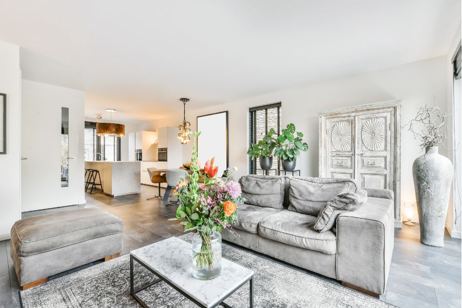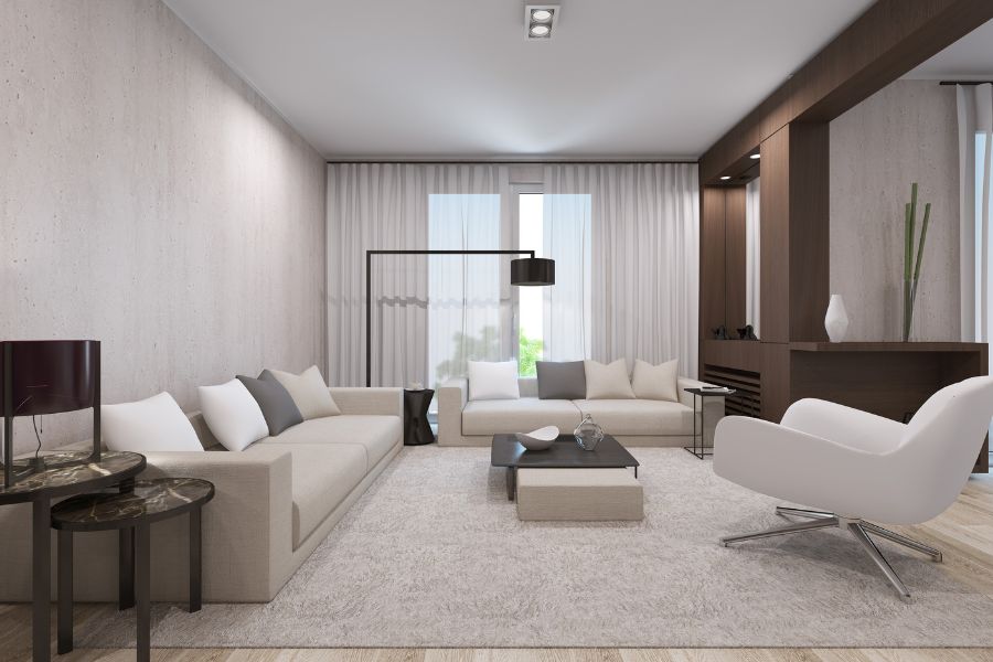 Tông màu xám trắng và trắng là sự kết hợp tuyệt vời để tạo ra một phòng khách hiện đại và trang nhã. Màu trắng là màu sạch và tinh khiết, mang lại cảm giác thoải mái, tươi mới và thanh thoát.