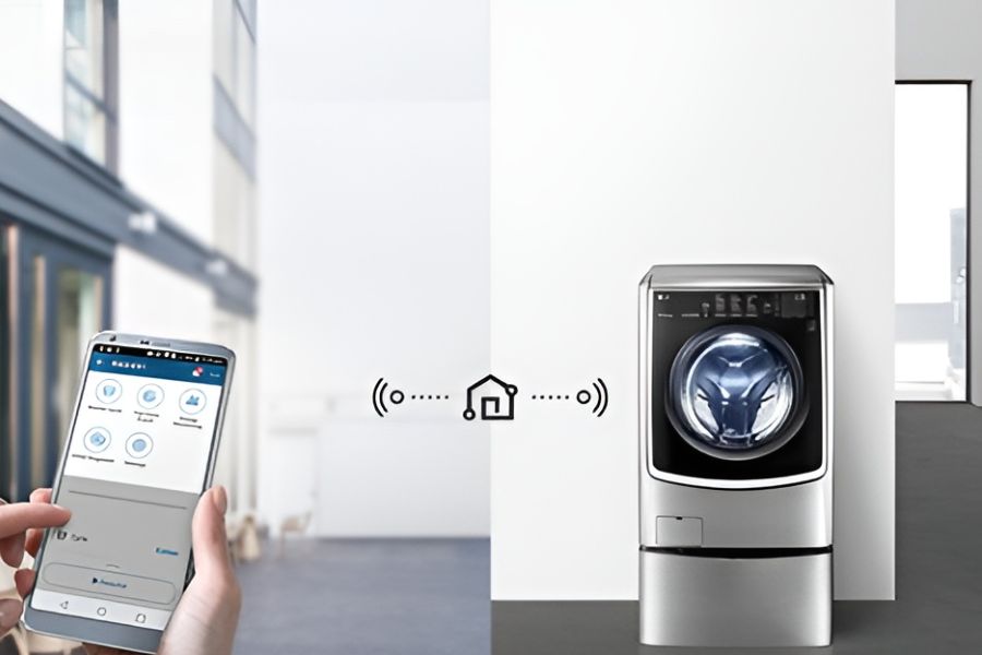 - Tích hợp kết nối từ xa: Điều này cho phép bạn điều khiển và theo dõi quá trình giặt và sấy từ xa thông qua ứng dụng di động Smart Home và Smart ThinQ. Bạn có thể bật và tắt máy, chọn chế độ giặt, và nhận thông báo khi quá trình hoàn thành tạo sự tiện lợi và linh hoạt cho việc giặt giũ hàng ngày.