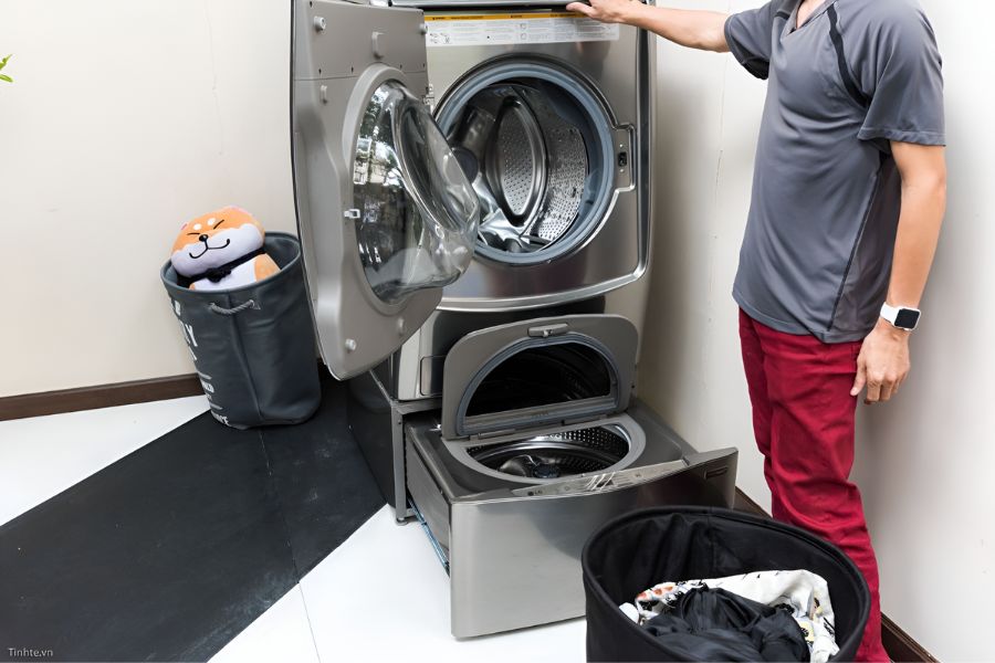 - Tiết kiệm diện tích: Máy giặt lồng đôi cho phép bạn giặt nhiều đồ và sấy cùng lúc, trong một thiết bị duy nhất thay vì cần hai máy riêng biệt. Điều này giúp giảm đáng kể diện tích cần thiết để đặt máy giặt trong nhà.
