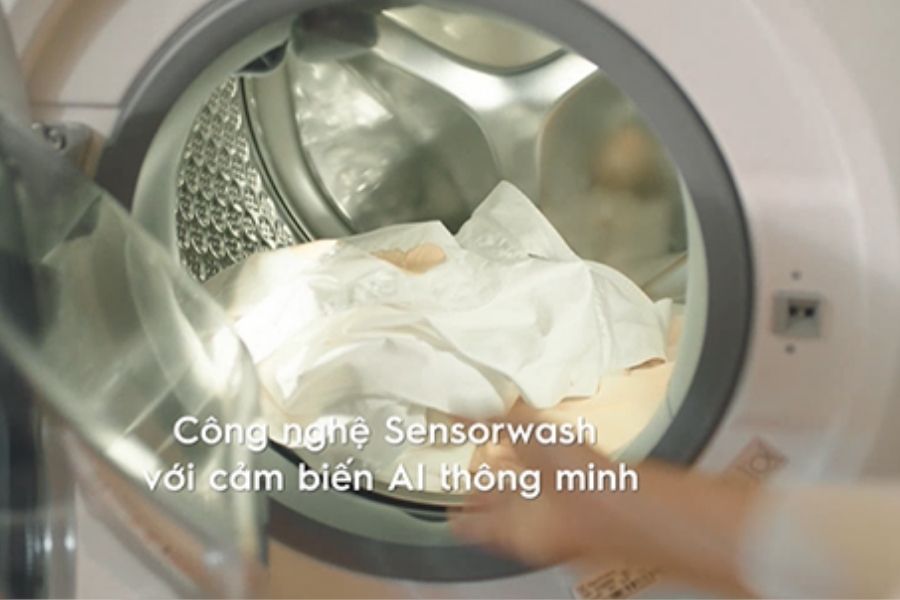 Công nghệ Sensor Wash kết hợp cảm biến Turbidity trước khi giặt và cảm biến Conductivity sau khi giặt, giúp tăng cường hiệu quả giặt sạch và giảm cặn đến 83%. Cụ thể như:
