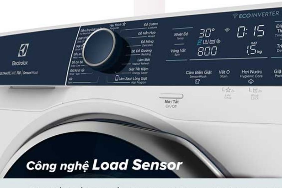 Công nghệ Load Sensor trên máy giặt Electrolux có khả năng cảm biến khối lượng và cân bằng lượng đồ cần giặt trước khi xác định thời gian giặt và lượng nước giặt cần thiết. Điều này giúp tối ưu hóa lượng giặt và đảm bảo rằng quần áo được giặt sạch một cách nhanh chóng và chất lượng.